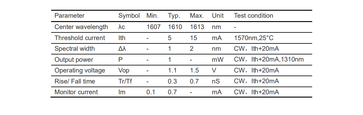 1610nm T/1550nm R 单线双向组件